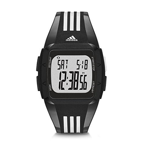 The adidas Performance Duramo Digital Watch comes with an alarm, stopwatch, backlight and date function to keep track of runs, training sessions and more . Fitted in a plastic resin case with a chronograph quartz movement, rubber strap fastener and an clear LCD dial display boxed and ready to go.