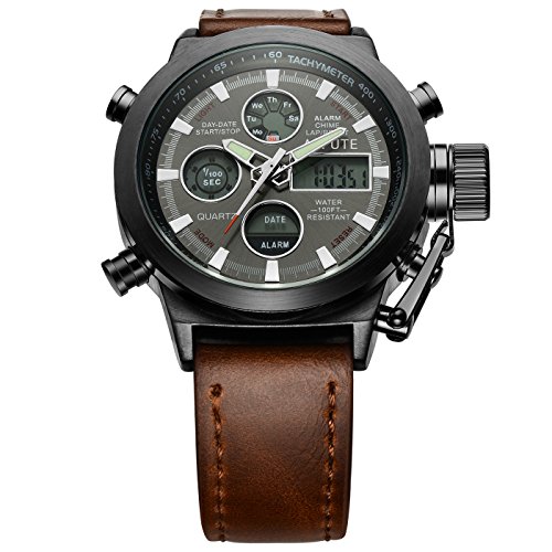 Afftue offer Affute Men Sports Watches Analog Digital LED 30M Water Resistance Japan Leather Quartz Military Watch. This awesome product currently limited units, you can buy it now for £21.98, You save -