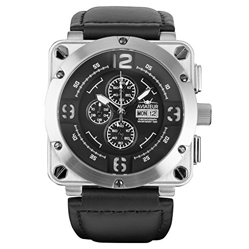 AVR-003-S-L Function: Analog time display Time, hours, seconds. Date display 100M water resistant Fly back chronograph Display: Analog time display Glow in the dark sandwich dial Authenic Aviateur laser logo at the back case Materials: MIYOTA OS-00 movement 316L stainless steel Watch Case 316L stainless steel watch back case Push/Pull Crown Anti-Scratch durable glass top Stainless steel watch band Stainless steel watch buckle Batterirs: SR927 Measurements: Watch case dismeter: 48mm Watch case thickness:14mm Size of band lug: 24mm Size of band:185-230mm