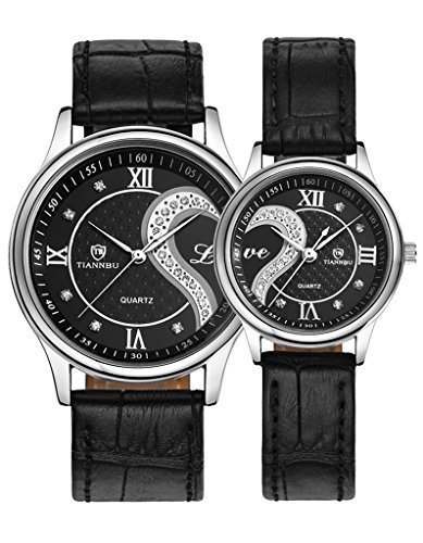 "Thank God I Met You! " Special design for sweet lovers. This his-and-hers watch is designed for couples,two dails placed side by side, a complete heart and a letter "love" appear. High quality deluxe shining bling bling hand-inlaid rhinestones definite this watch a luxury style.Made of top quality Japan movement, stainless steel case and genuine leather, offering a comfortable wear feeling for the wrist. Special and elegant appearance, forever love never out of date, suitable for any occasions. They are the best choice as a present for anniversary,Valentine's Day, birthday and any other special days! They are also creative casual wristwatch as wonderful Christmas gifts for friends. Standard daily waterproof,could be wear when washing hands,pls do not take it to swim and shower.