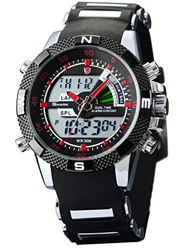 If you are looking for a product Shark Mens Army Dual Display Alarm Chronograph Sport Wrist Watch Red Dial SH043 then I will show you information and reviews about this product. Shark Mens Army Dual Display Alarm Chronograph Sport Wrist Watch Red Dial SH043 searched by people on the internet then not to run out of this stock. Make purchases with the click of a button 'Buy Now' if you really want to have this product. The following information and reviews about this product: