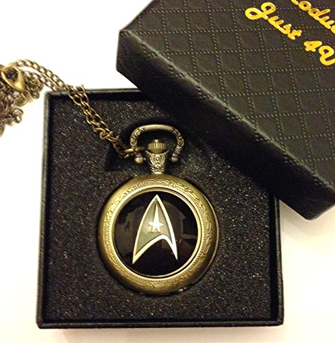Products Just4U offer Star Trek Logo Quartz Pocket Watch Necklace - Antique Bronze Effect - GIFT BOXED WITH FREE SPARE BATTERY. This awesome product currently limited units, you can buy it now for £19.99 £12.99, You save £7